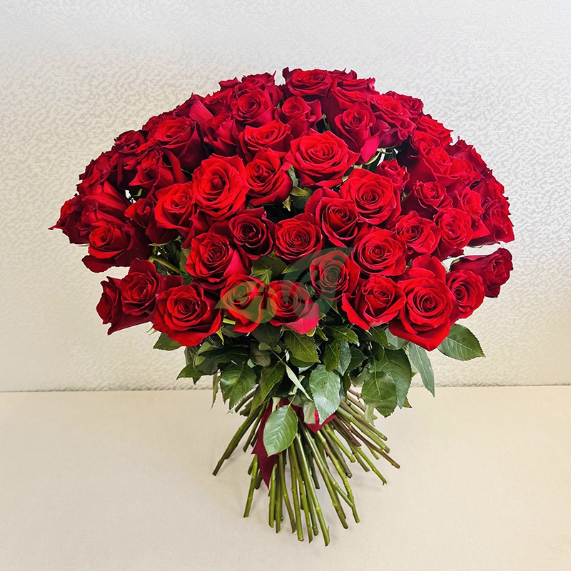 • Роза - 101 штука, цвет - красный, длина стебля - 70 см;