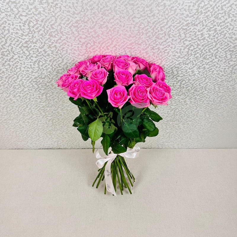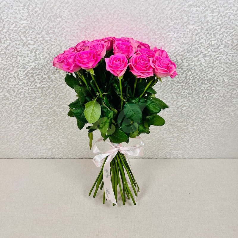 • Роза - 25 штук, цвет - розовый, длина стебля - 60 см;