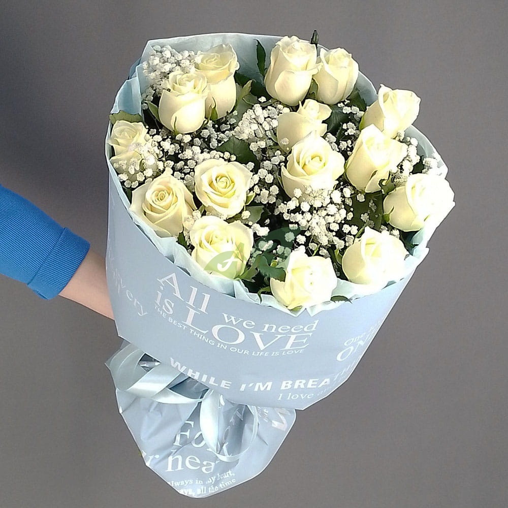 • Роза - 15 штук, цвет - белый;
